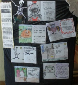 Entonces comemos nueces, castañas,huesos de santo y buñuelos.Cantamos, nos disfrazamos y en nuestro club de poesía,leemos a los Monstruos Divertidos.